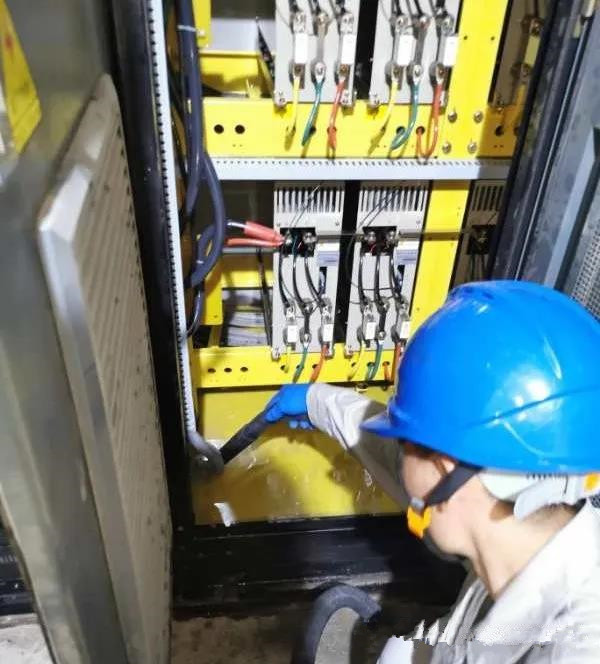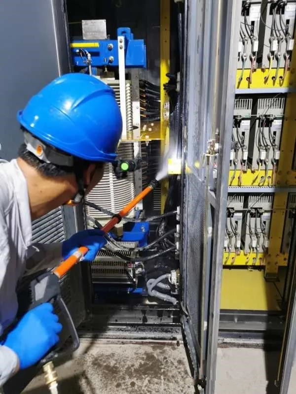 本次施工地點為貴州某水泥有限公司廠區配電房內,需要清洗維護的設備為高壓變頻組與變頻柜等設備。